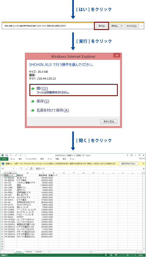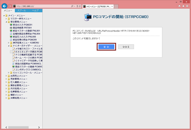 IFS に保存している Excelブックを表示します。