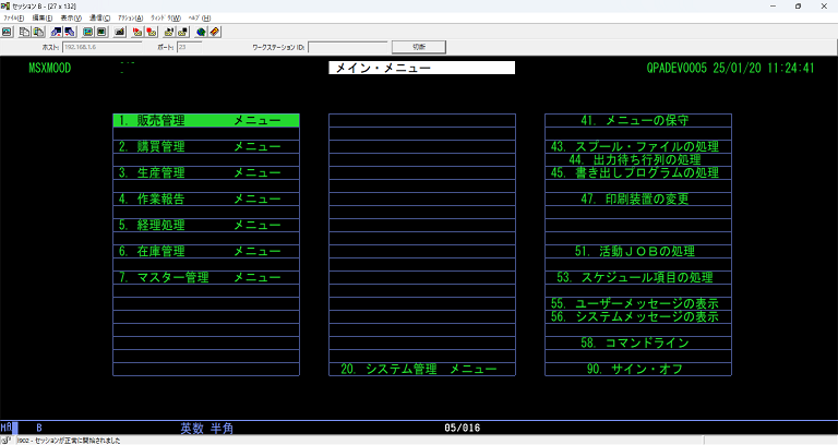 5250ビューの番号を選択するようなメニューでは番号を選択して