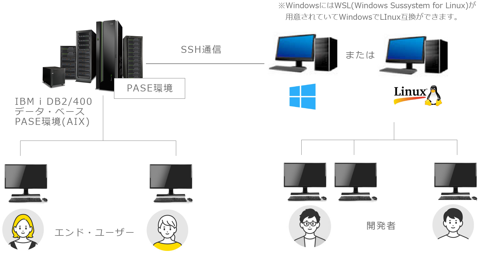 開発者個人のPCを開発環境として本番環境をIBM i/PASE環境としたり